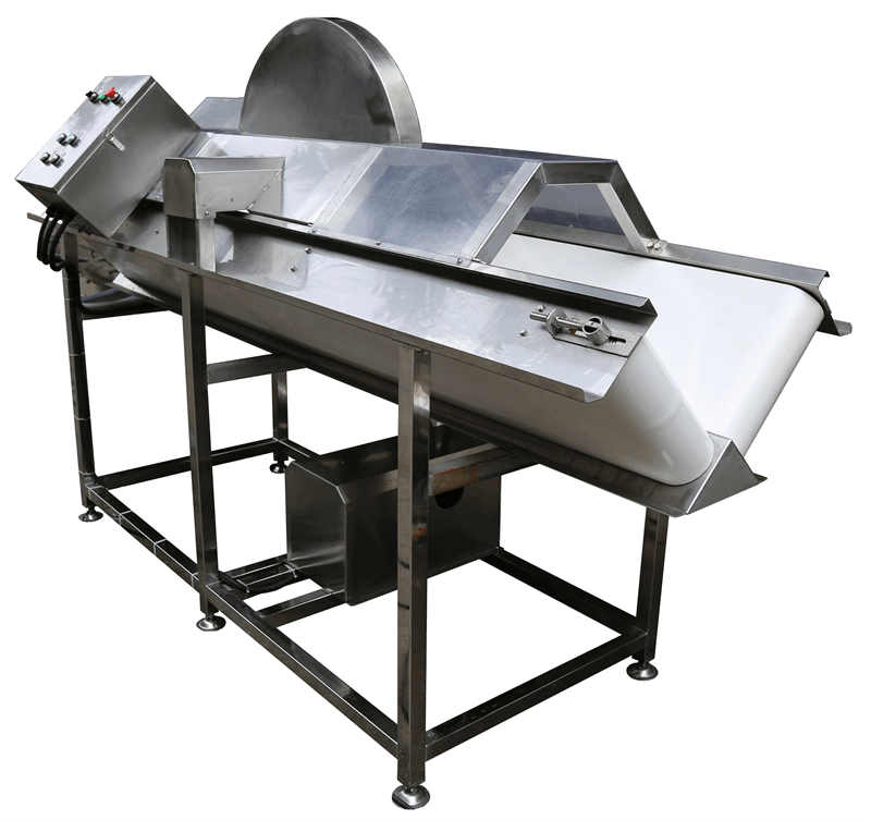 2、 用60度以上溫水將切菜機(jī)傳送帶及切片機(jī)清洗潔凈。